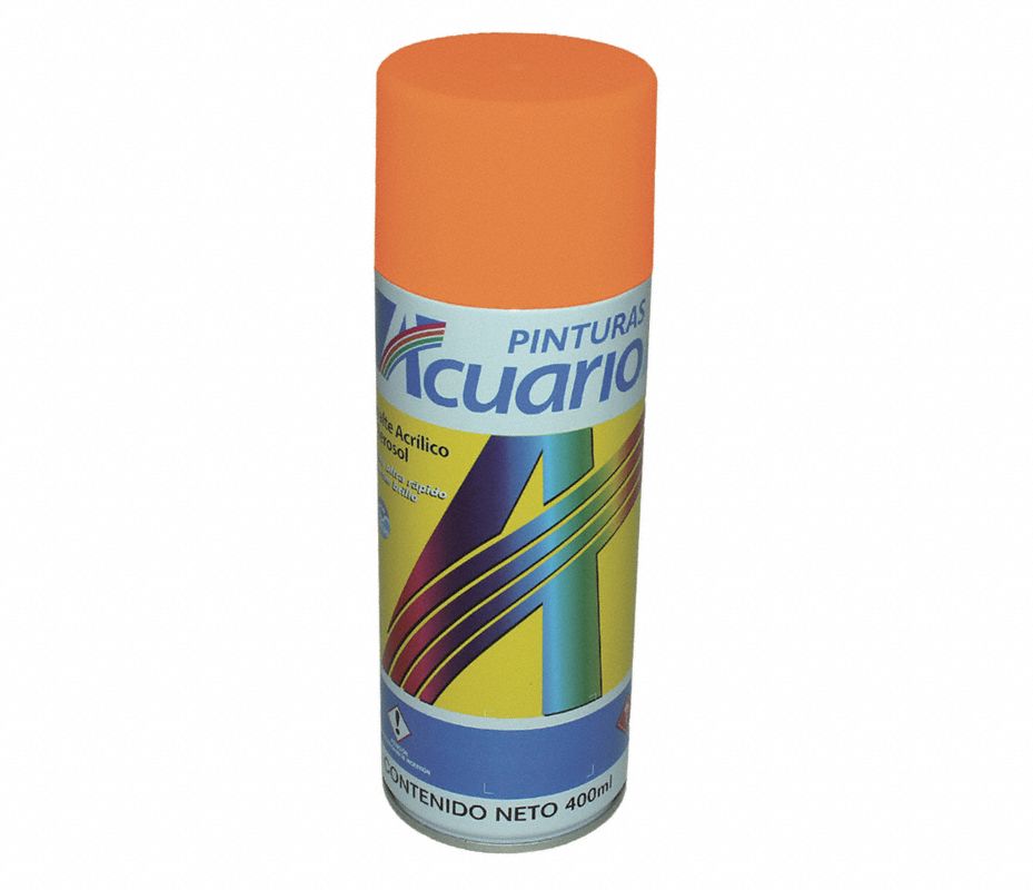 PINTURAS ACUARIO Pintura en Aerosol in Fluorescente Naranja Fluorescente for Cartón, Vidrio, Metal, Papel, Plástico, Madera, 400mL - Pinturas en Aerosol - 28M689 | AA76305 - Grainger México