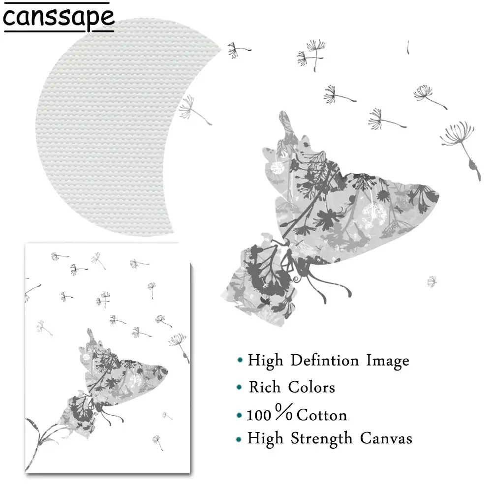 Impressão abstrata dandelion pintura em tela flor borboleta cartaz preto e branco impressão da arte nordic parede fotos decoração para casa|Pintura e Caligrafia| - AliExpress